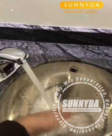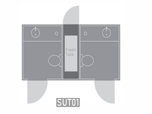 Restroom trailer model SUT01 has a provision for an antifreeze agent. Other small things such as paper holders, mirrors, towel racks, hand dryers, etc. are all included. Still, you can choose to delete items don’t want, or add special items you want like surround sound.