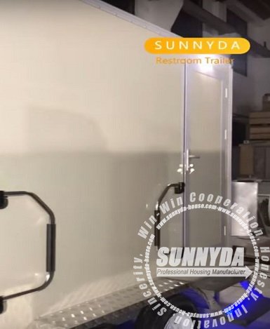 Also, solar panel could be installed on roof for lighting. Lighting on the trailer is 12V. Air conditioner to ensure restroom trailer is a comfortable environment, important prevents freezing of fresh water tank and pipe during the winter season. For very cold country we will have extra heater in each room, and special process for waste tank.