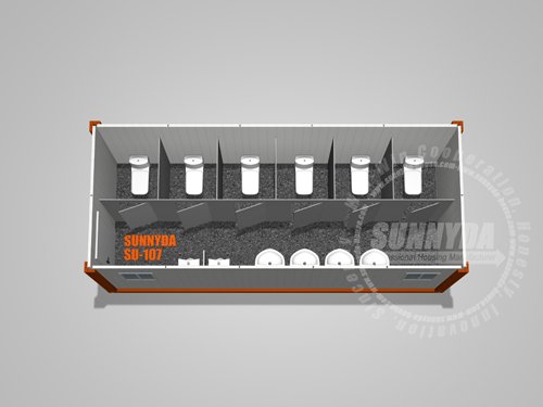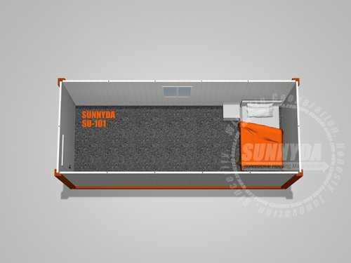 Demountable building small unit is 20ft container house;the mainframe is 4mm painted and galvanized steel. If there is no extra gable or slope roof, container house itself has a self-drainage system. The floor is very flat cement board or plywood, with thick insulation material underneath while the top is heavy traffic commercial PVC floor. It features strong security steel door and double glazed glass aluminum window.