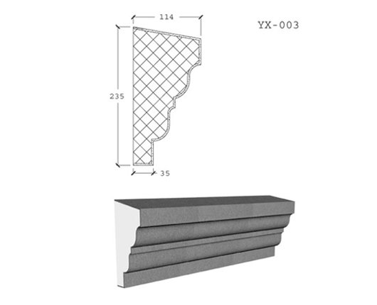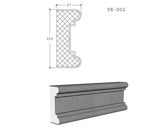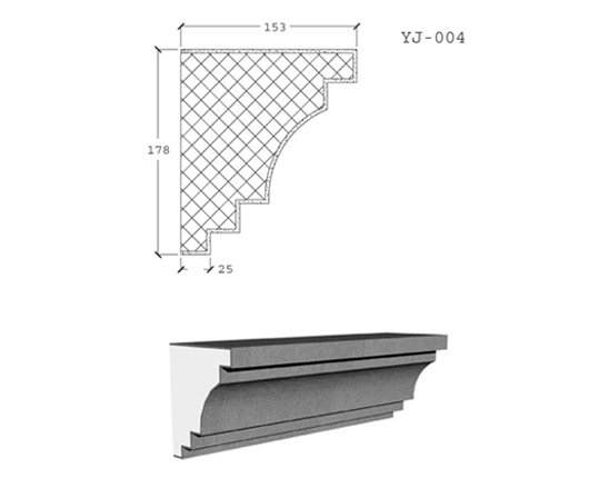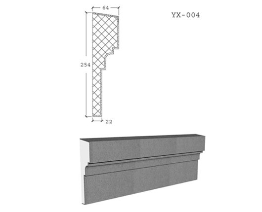 It is a new type of exterior wall decoration line and component, which is more suitable for installation the external wall EPS, XPS insulation wall; it can not only reflect the European classical and elegant decoration style but also ensure that the main building exterior wall does not appear cold, thermal bridge effect.