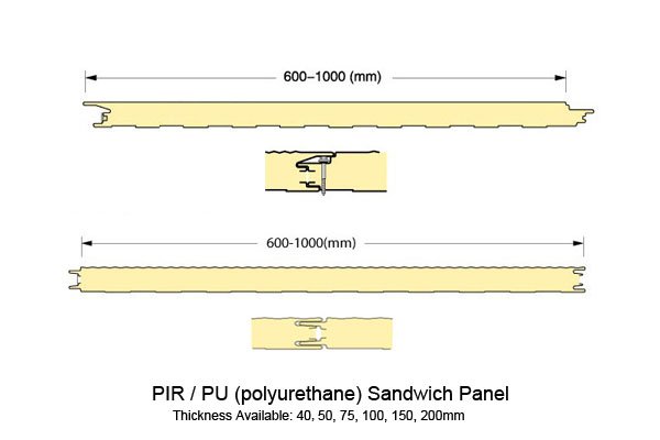 PIR panel which is alternatively known as polyisocyanurate is made from a thermoset plastic and galvalume steel, PPGI, stainless steel or aluminum sheet. The steel of galvalume steel or PPGI used in the making of PIR panel thickness ranges 0.4-0.8mm.