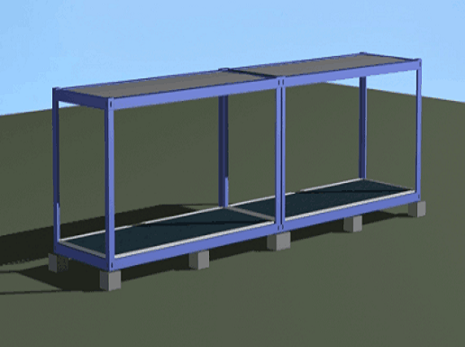 It can be combined to a bigger size using connection kit waterproofing rubber, screws and steel boards. You can connect them using the 2438mm side or 6058mm side and can be stacked up to three floors.