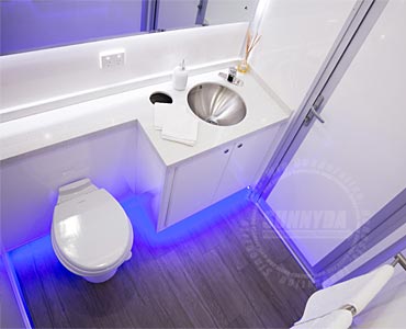 The restroom trailer is completely finished in the factory, there are men’s room, women’s room, and one mechanical room. Toilet, hand basin, and pipeline are fully installed. Electric systems, according to the client’s local standard can be installed as well.
